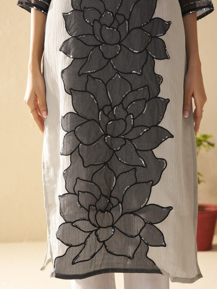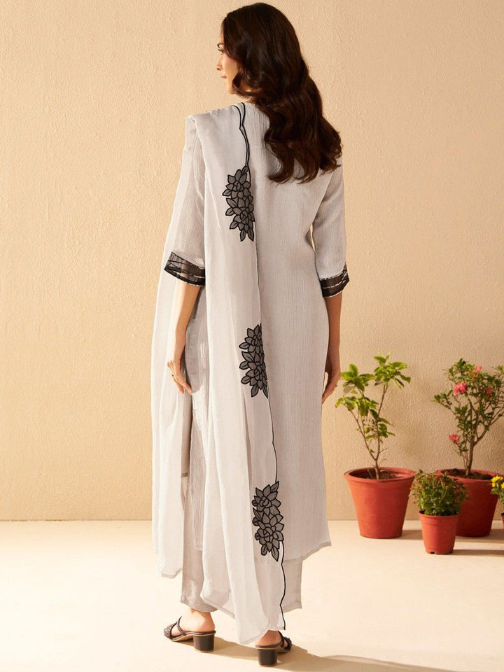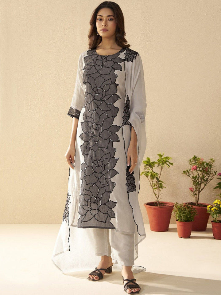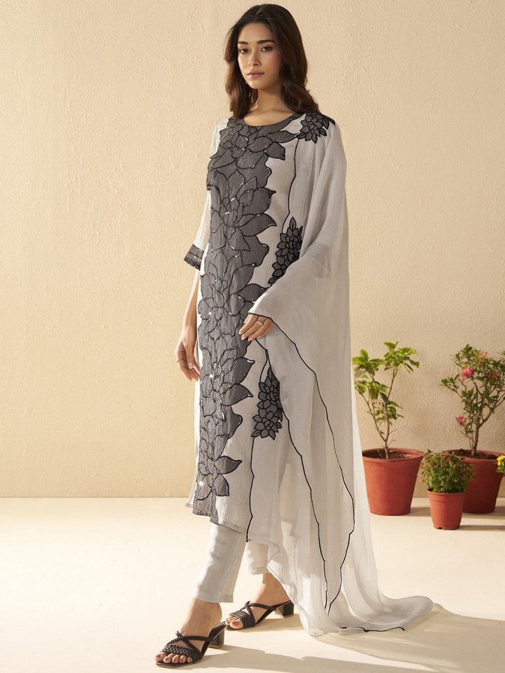 Albeli Frost Floral Embroidered Sequinned Kurta With Trouser And Dupatta