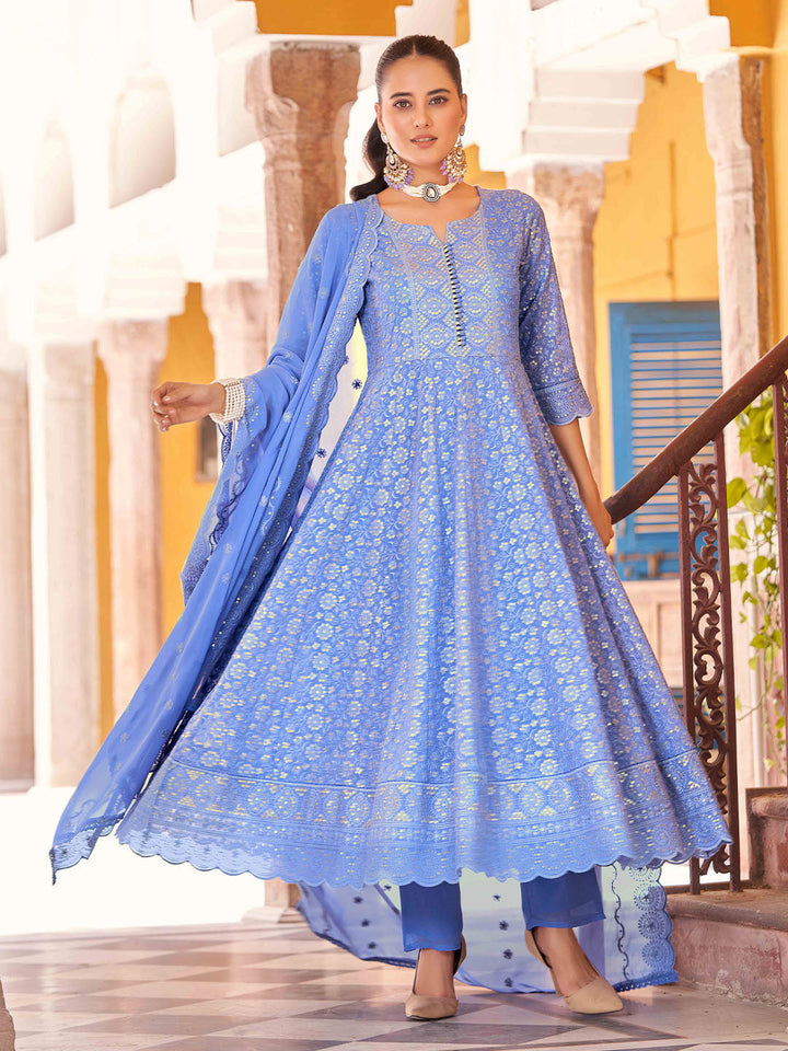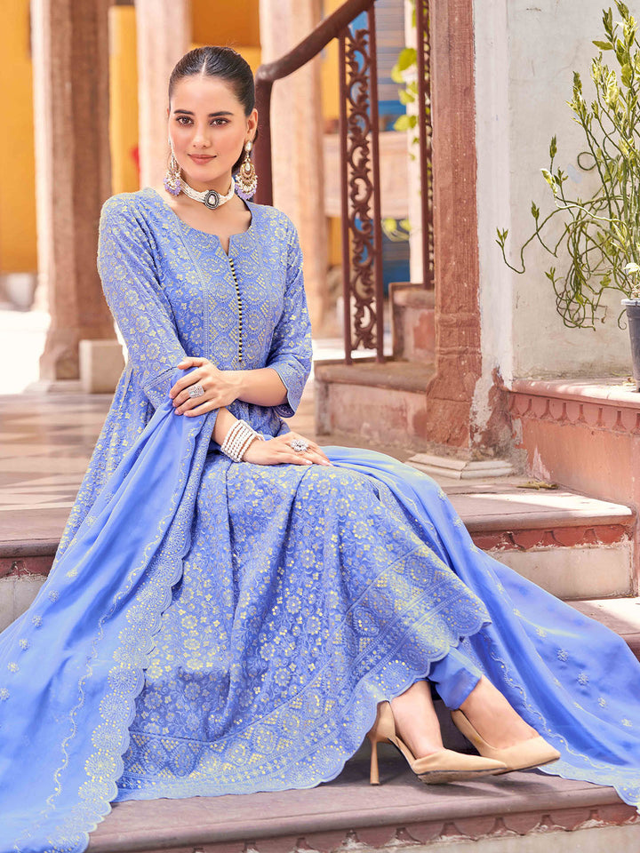 Chikankari Embroidered Kurta with Trousers & Embroidered Dupatta