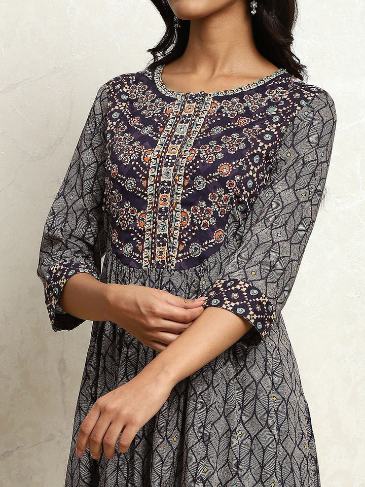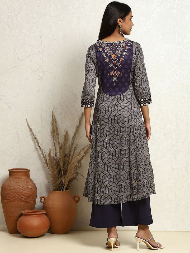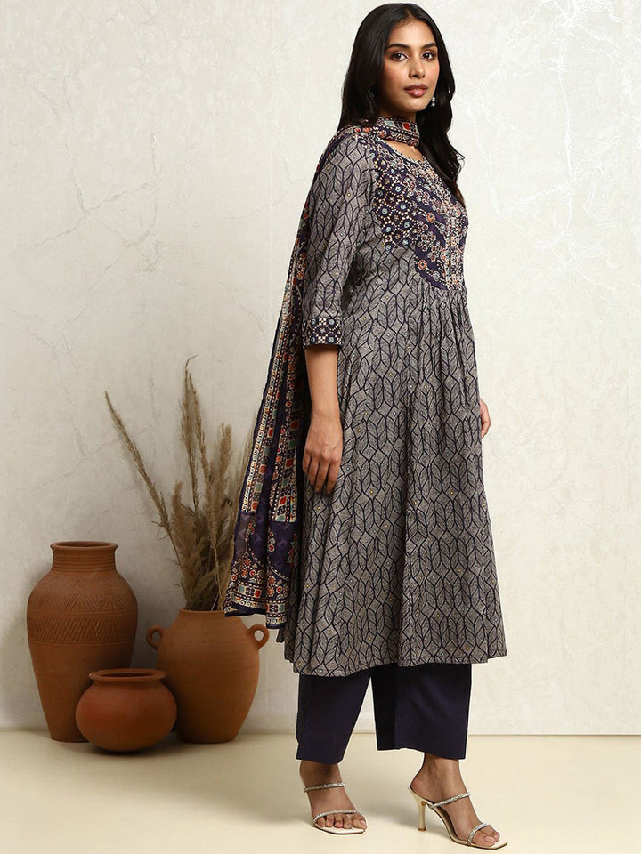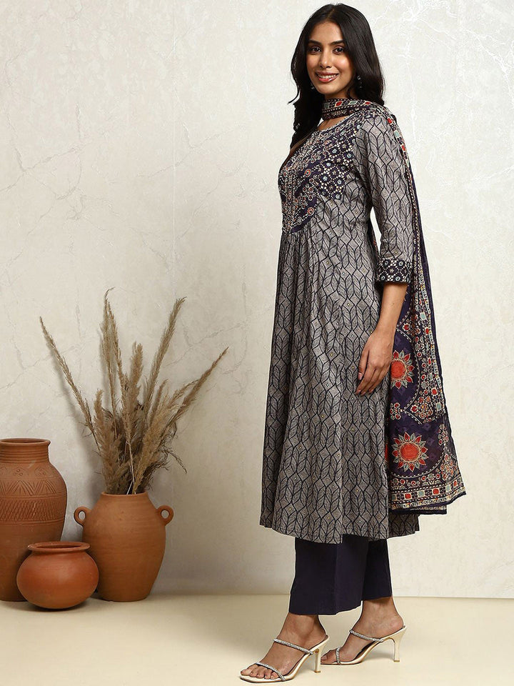 Ethnic Motifs Printed Beads & Stones Pure Cotton A-Line Kurta With Palazzos & Dupatta