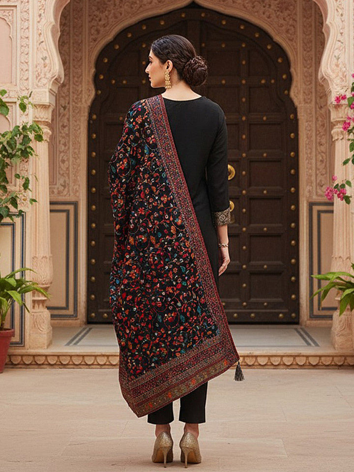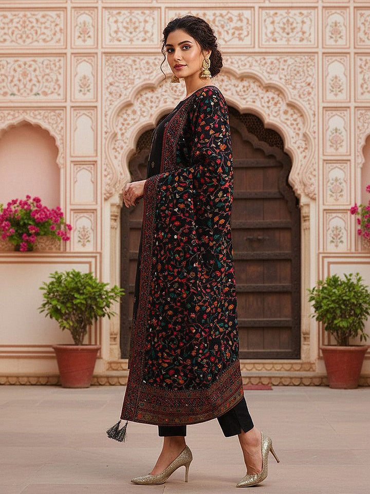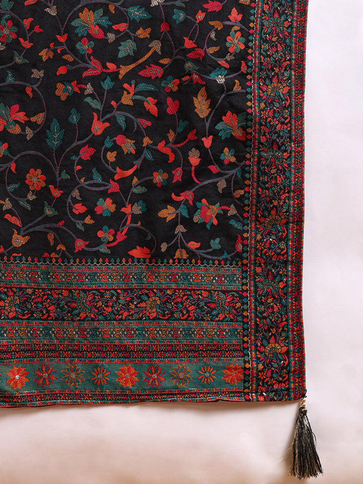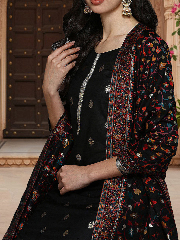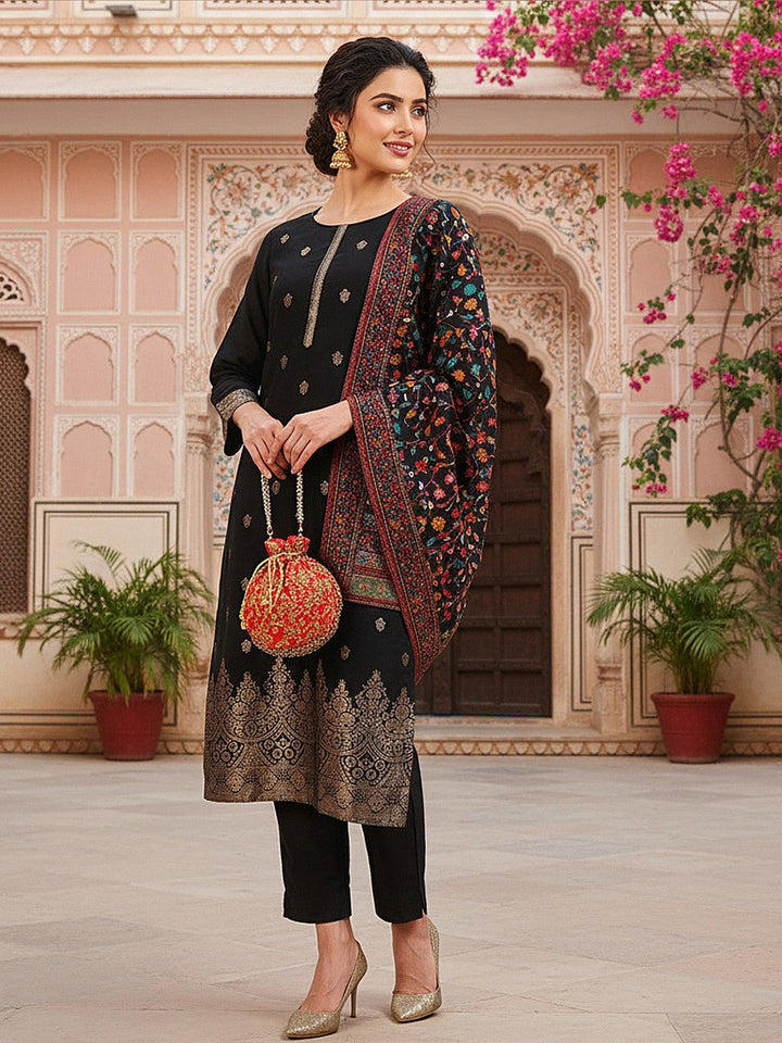 Floral Woven Design Zari Straight Kurta With Trousers & Dupatta
