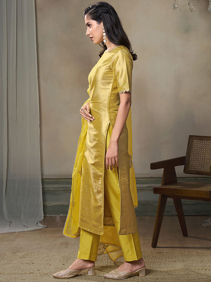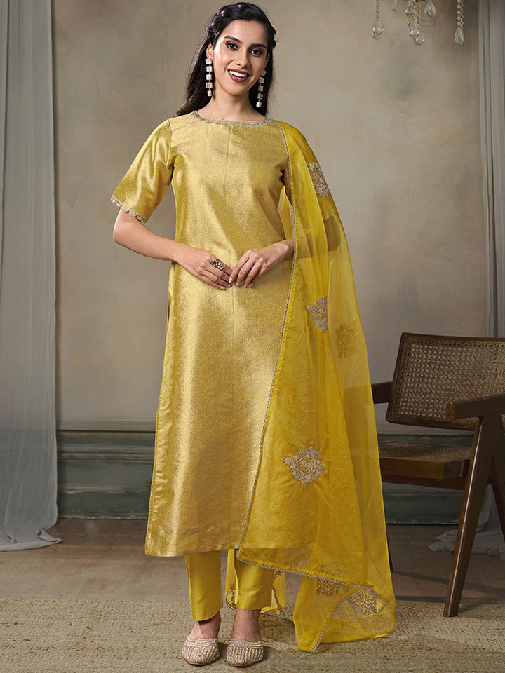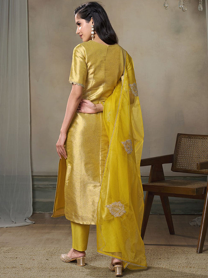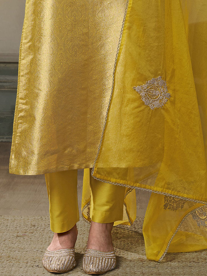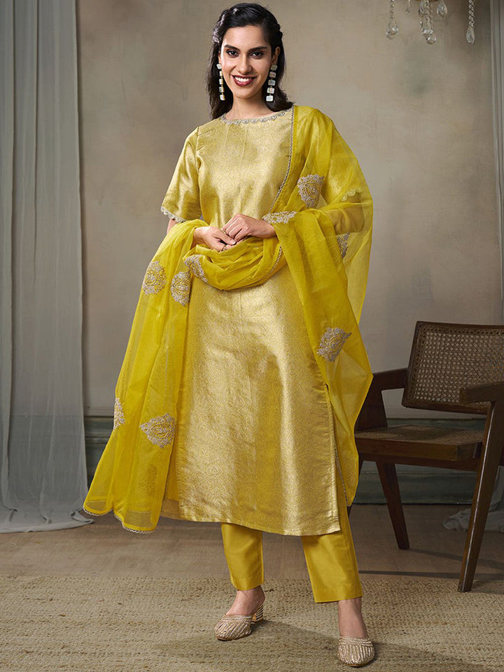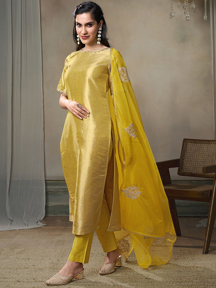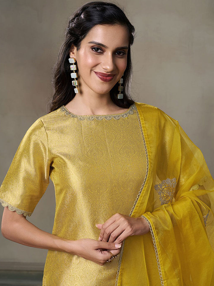 Paisley Woven Design Kurta With Trousers & Dupatta