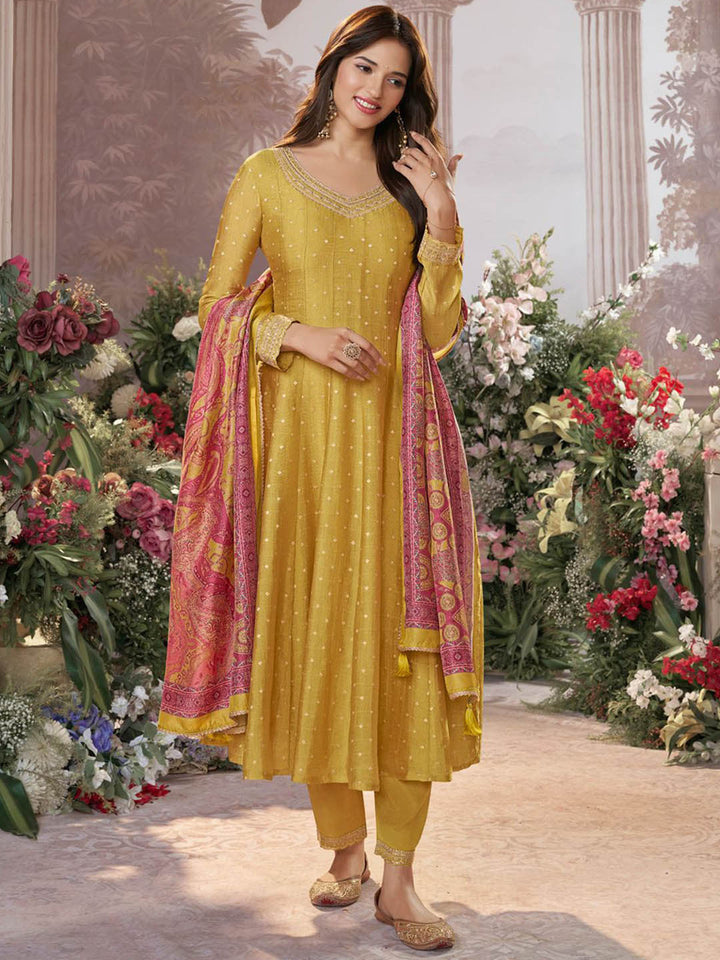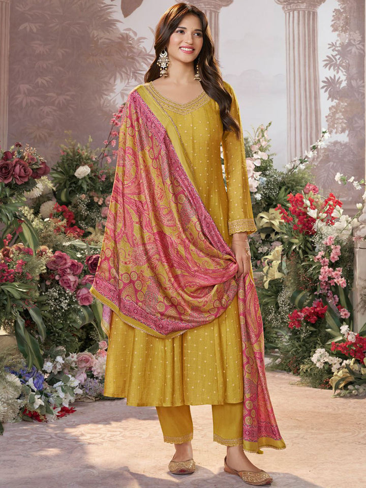 Women Ethnic Motifs Embroidered Anarkali Kurta with Trousers & Dupatta