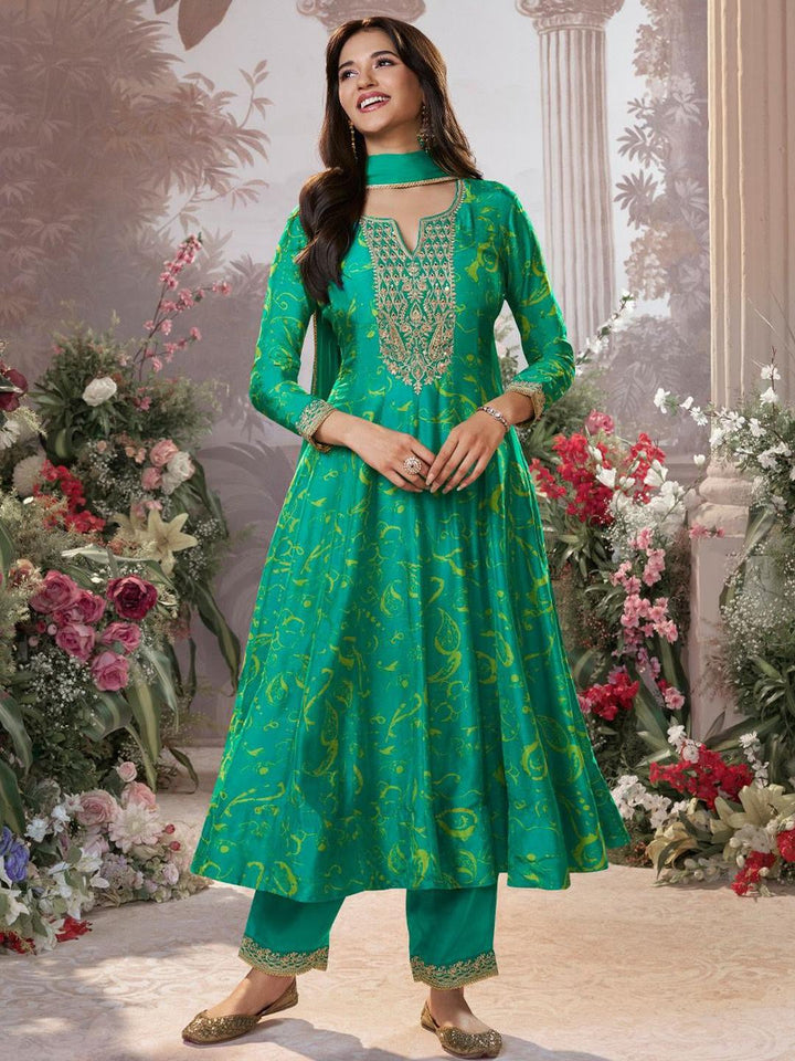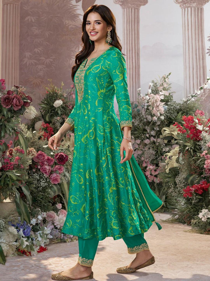 Women Ethnic Motifs Printed Regular Pure Silk Kurta with Trousers & Dupatta
