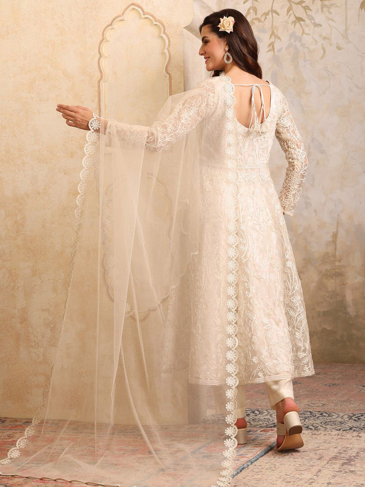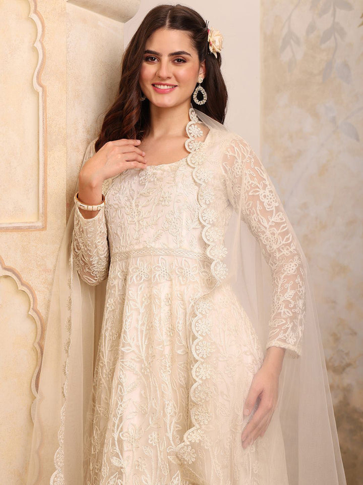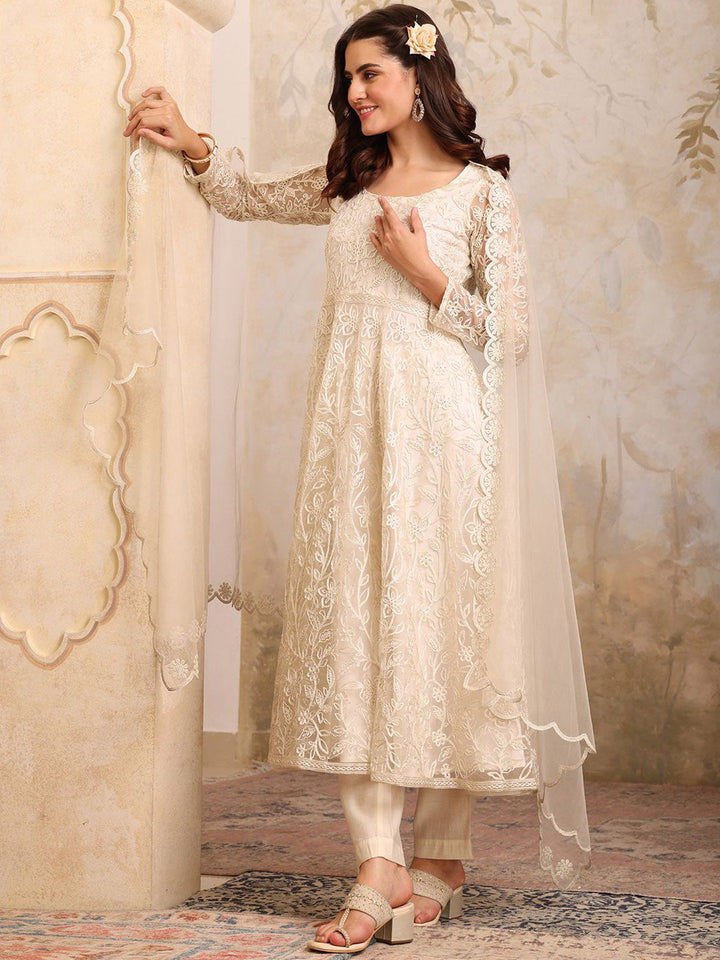 Women Floral Embroidered Round Neck Anarkali Kurta With Trousers & Dupatta