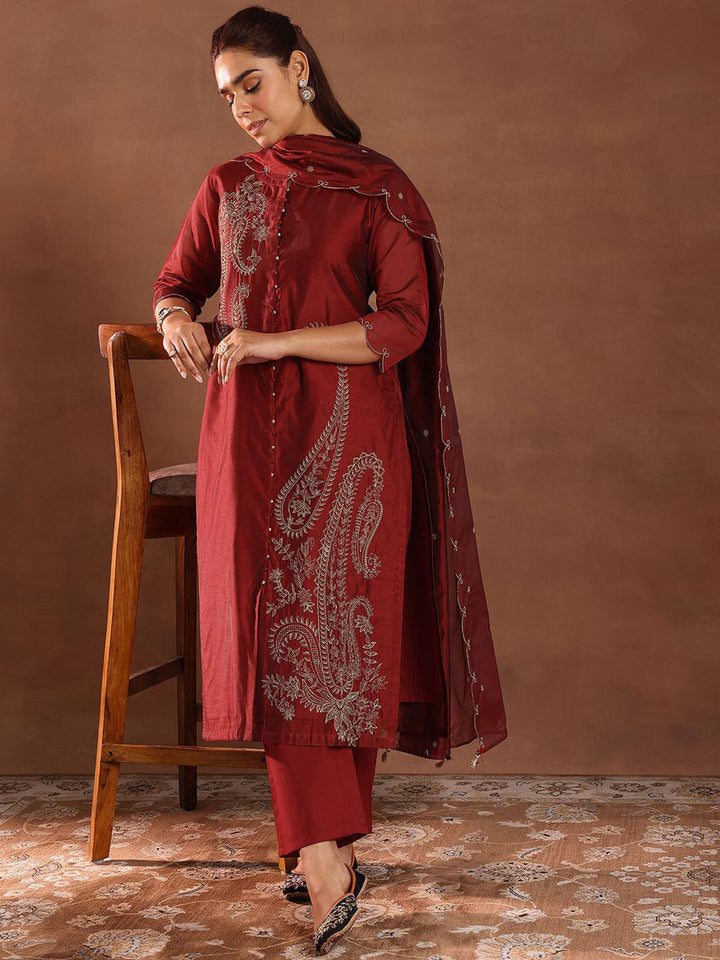 Women Paisley Embroidered Kurta with Trousers & Dupatta