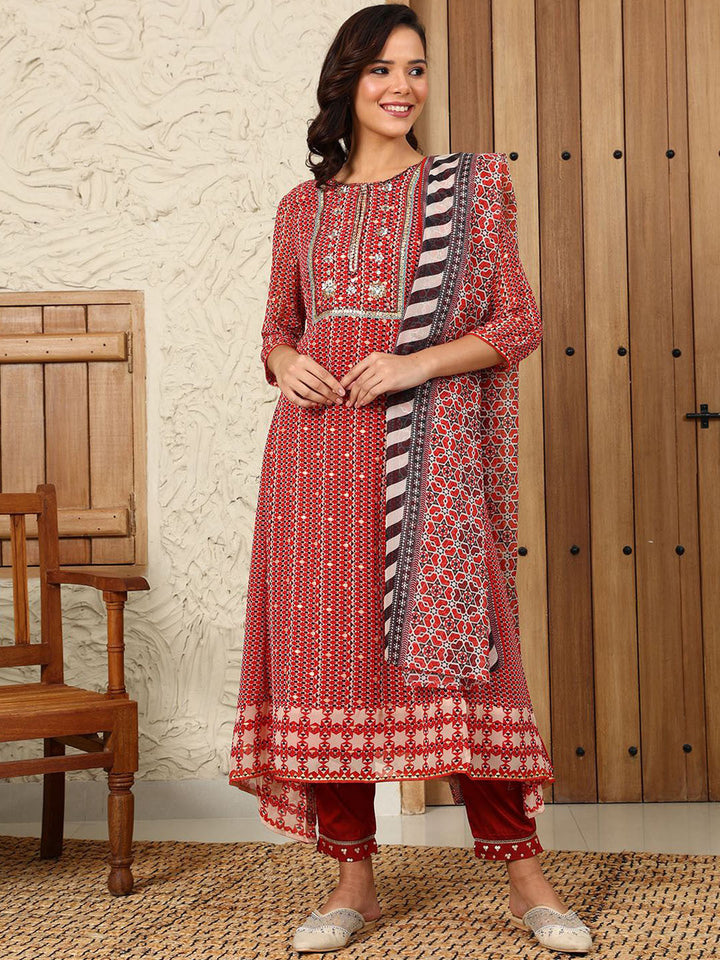 Women Printed Regular Gotta Patti Kurta with Trousers & With Dupatta