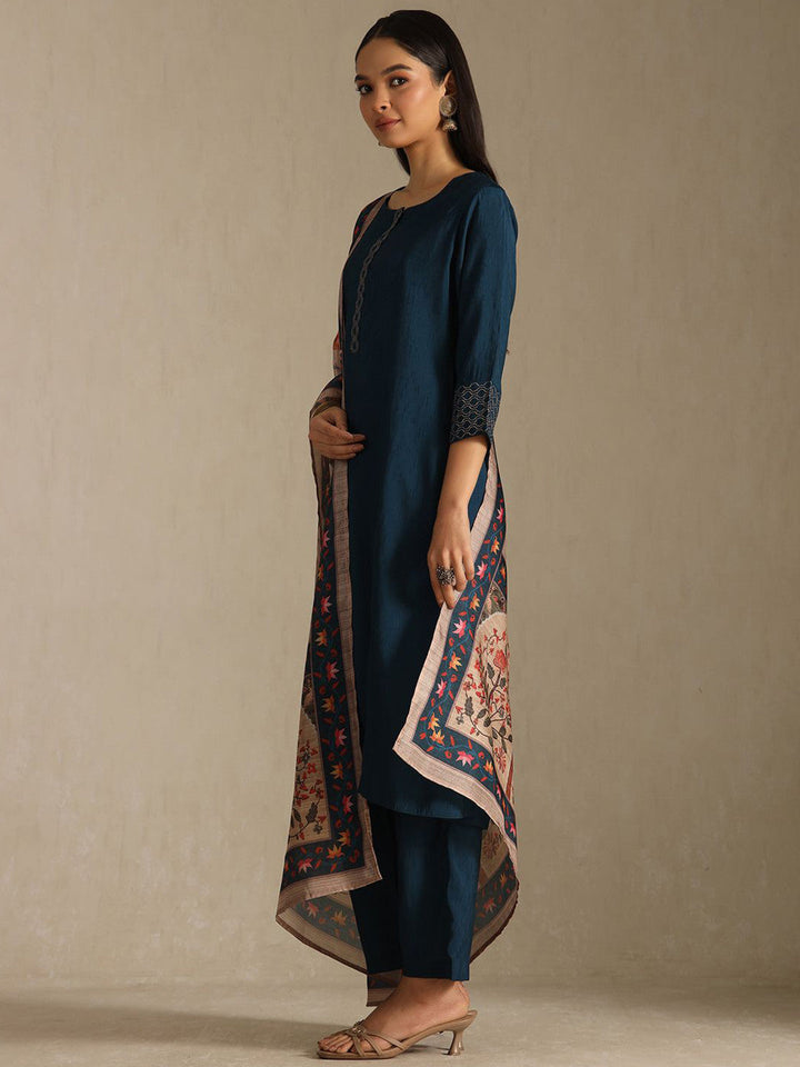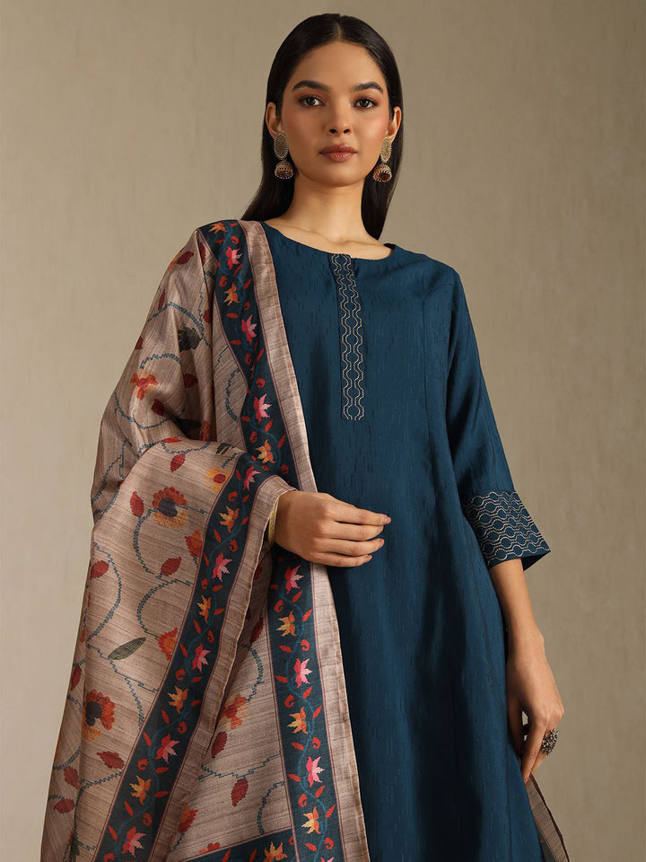 Women Solid A-Line Kurta with Trousers & Dupatta